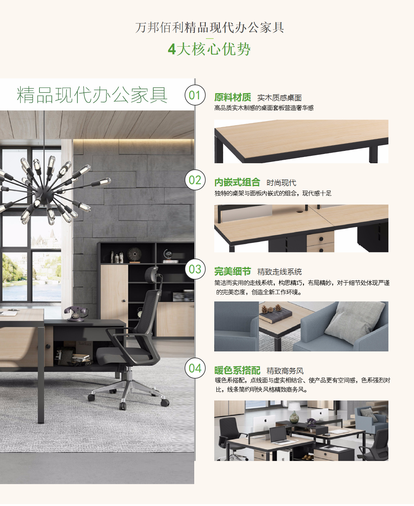 北京萬(wàn)邦佰利家具有限公司是一家專(zhuān)注于辦公家具生產(chǎn)、批發(fā)銷(xiāo)售的公司。銷(xiāo)售的產(chǎn)品有:班臺(tái)、經(jīng)理桌椅、會(huì)議桌椅、員工桌椅、文件柜、密集柜、視屏?xí)h桌、辦公沙發(fā)、學(xué)校家具、銀行家具、戶外家具、醫(yī)院家具等產(chǎn)品,公司自成立以來(lái)始終堅(jiān)持以人才為本、誠(chéng)信立業(yè)的經(jīng)營(yíng)原則,堅(jiān)持用企業(yè)文化提升企業(yè)核心競(jìng)爭(zhēng)力,使企業(yè)在發(fā)展中處于良好的形象.我公司主要服務(wù)于企業(yè)單位的家具定制服務(wù),為各大企業(yè)量身定做整體環(huán)境的家具設(shè)計(jì)全程服務(wù),我們的整體產(chǎn)品服務(wù)...